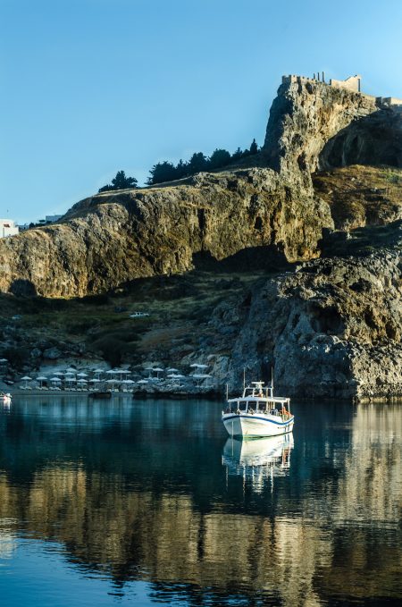 Situated 50km south of Rhodes town, our unique little village, classified as an archeological site, is surrounded by beautiful beaches and topped with a spectacular Acropolis. Lindos is made up of cascading white-washed houses along with carved stone captain’s houses as well as many historical churches, monasteries and an ancient theater.